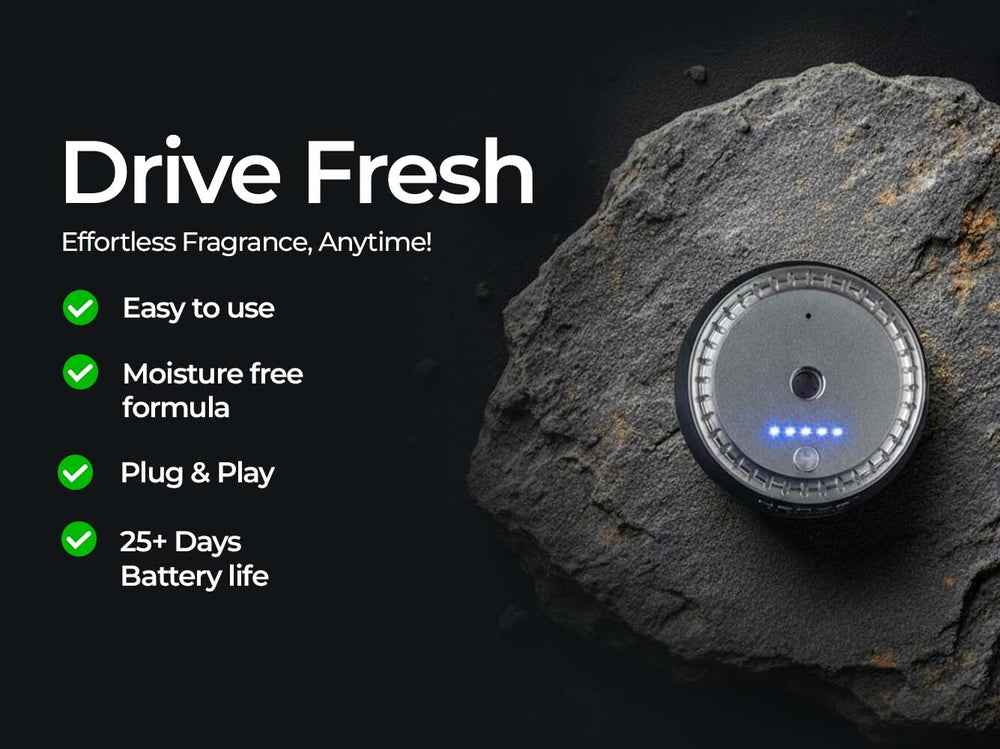 Now it can. Nerve Electric Smart Diffuser fills your cabin with pure, long-lasting fragrance—no water, no mist, no mess. Just smart, sensor-based diffusion that works with your drive.